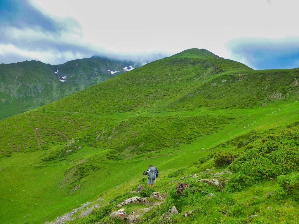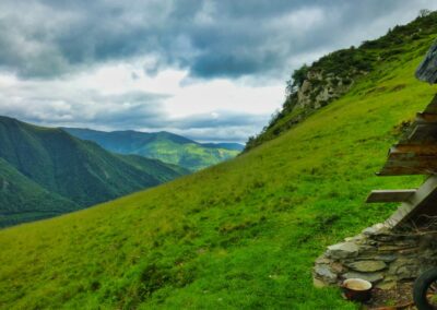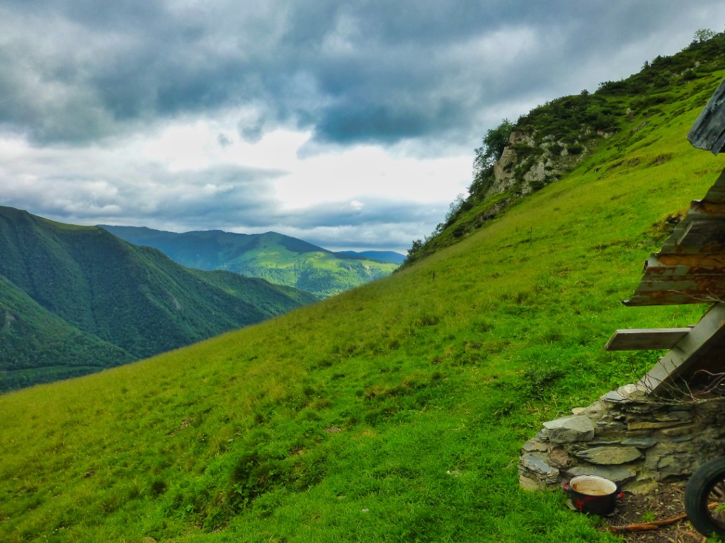 Aujourd’hui nous avons 1700 m de dénivelé positif . Les premiers 400 jusqu’à la cabane de Besset ( où le captage d’eau ne fonctionne plus) puis 400 autres mètres jusqu’au clôt du Lac , il y a aussi une cabane aménagée où il n’y a plus d’eau également. Heureusement nous en trouvons dans la descente près d’une cabane de berger.