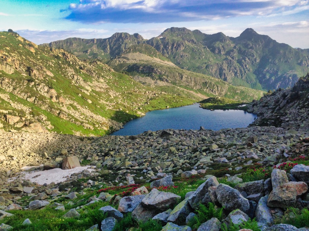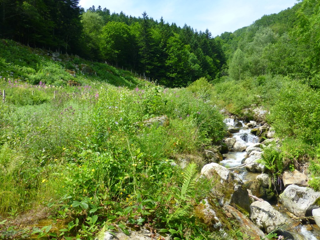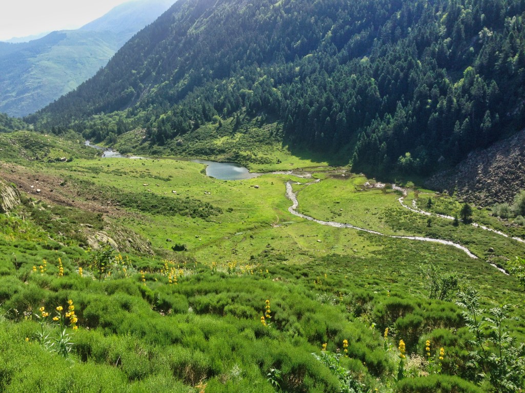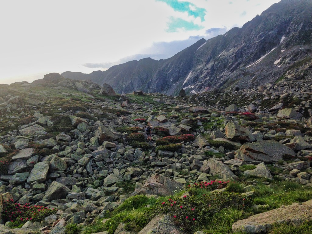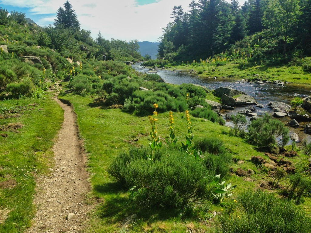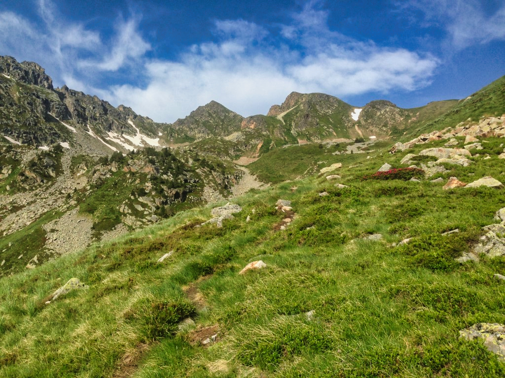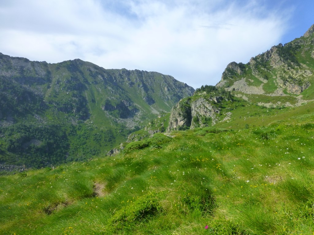 Le paysage est superbe. On marche au milieu de rhododendrons , des gentianes jaunes , de quelques asphodèles et plein d'autre fleurs donc je ne connais malheureusement pas le nom.