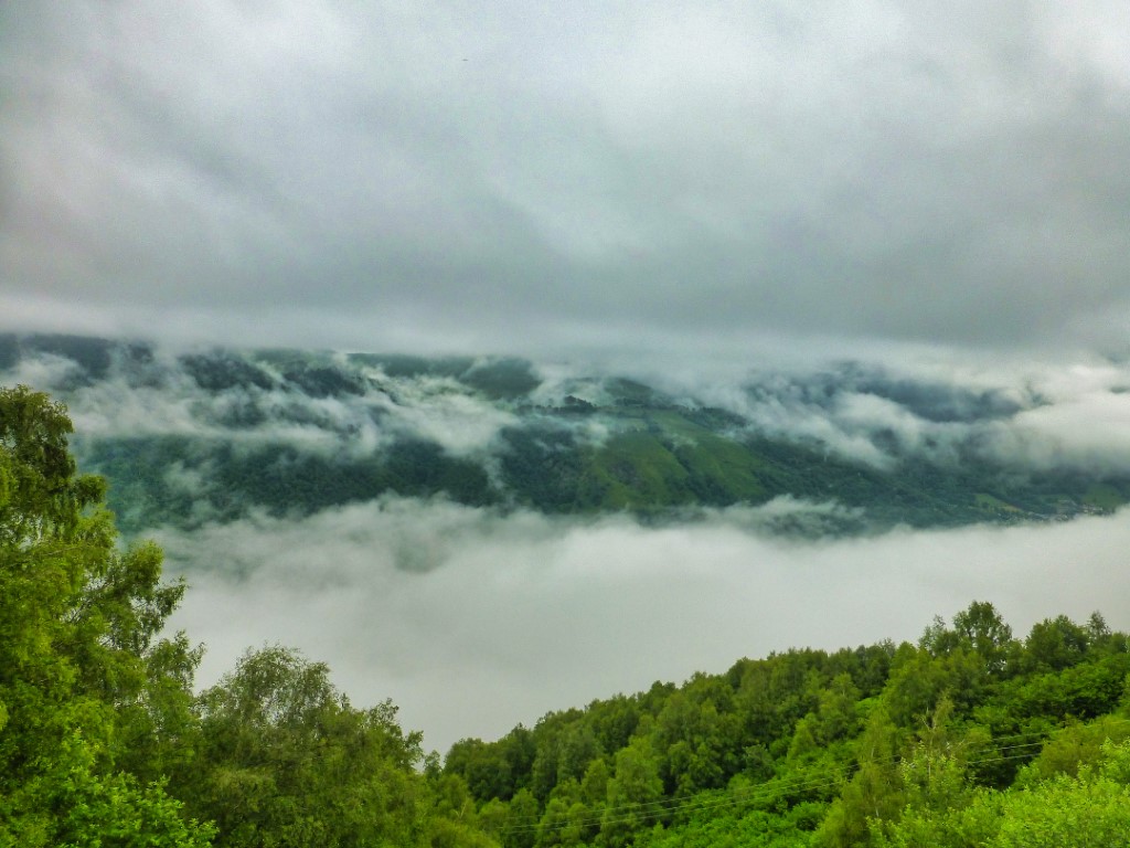 A 07h40 nous laissons le Centre de montagne de Germ et prenons le chemin de la cabane d'Ourtiga. Le temps est maussade .