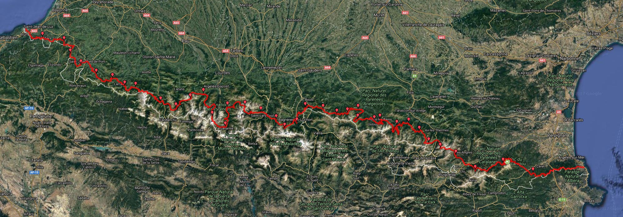 Sa longueur est d’ environ 900 km et son dénivelé 50 000 m environ, son point culminant est la Hourquette d’Ossoue (2734m).