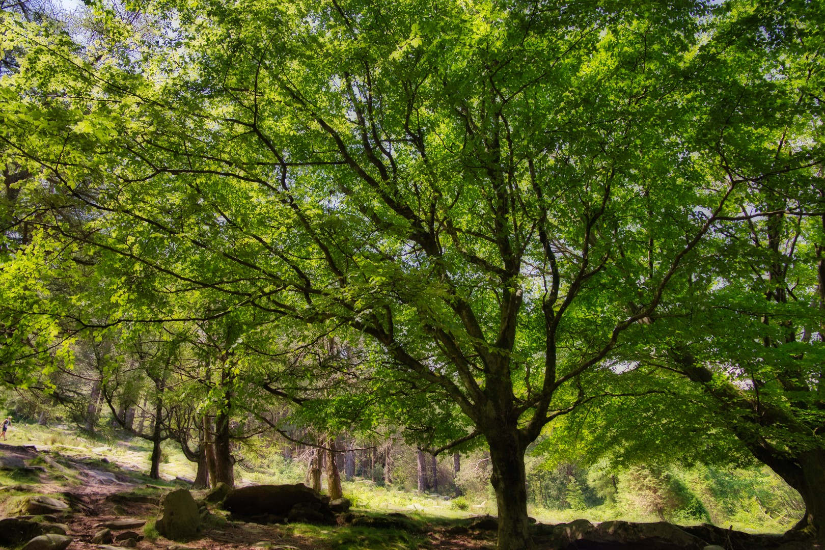 Un chemin part sur la droite. Après quelques dizaine de mètres de superbes chênes bordent le côté.