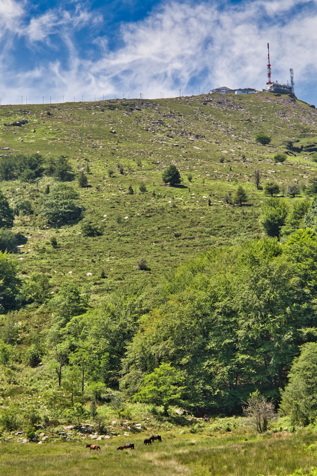 A la fourche suivante prendre le chemin qui part sur la droite et qui rejoint un enclos. Contourné celui-ci par la gauche et après 180 mètres environ prendre un sentier sur la gauche. Traverser le ruisseau . Ensuite il n'y a pas vraiment de sentier, le but étant de longer la forêt de pins, de partir sur la droite et de rejoindre la crête avant d'arriver au sommet.