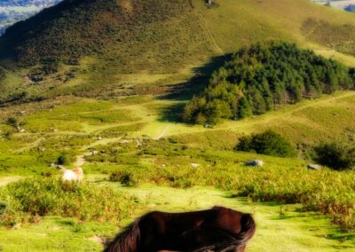Pour le retour prendre le sentier situe coté ouest qui repart au nord pour rejoindre un chemin qui passe par la gauche du pic d’Ezcondray.