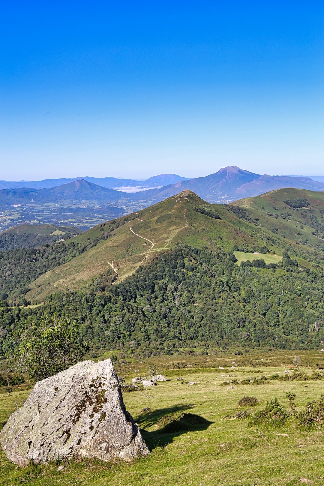 Pour le retour prendre le sentier situe coté ouest qui repart au nord pour rejoindre un chemin qui passe par la gauche du pic d’Ezcondray.