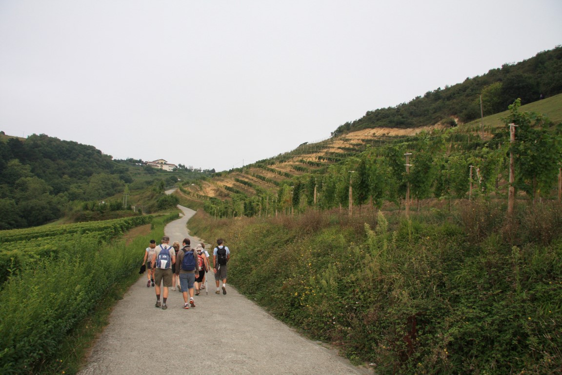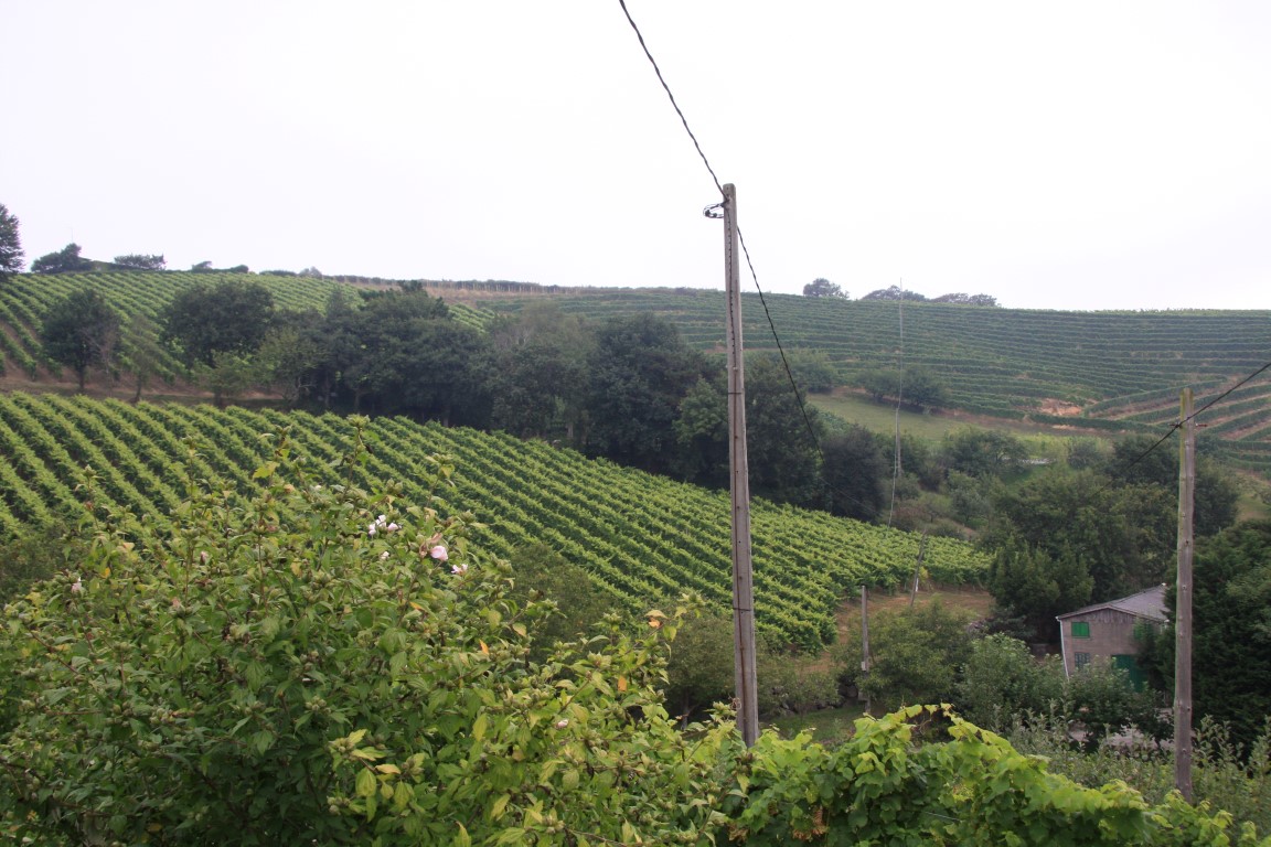 Cette petite route passe au milieu des vignobles de Txakoli; les vignes, garnies de raisins, n’attendent plus que les vendanges.