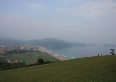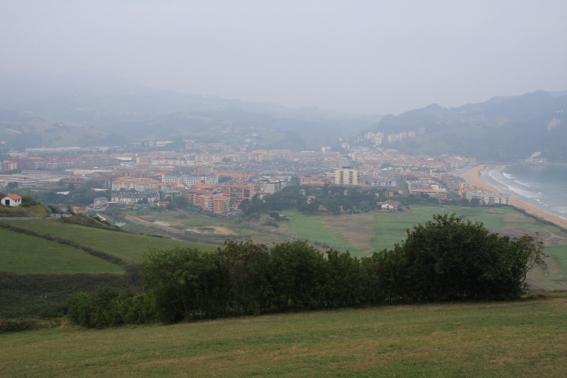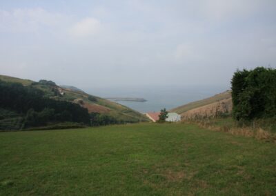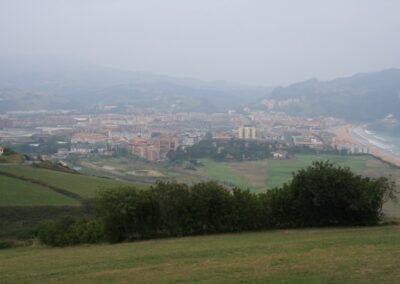Au sortir des vignes (3 km) nous prenons à droite et longeons un camping pour arriver en haut d’une colline qui domine Zarautz.